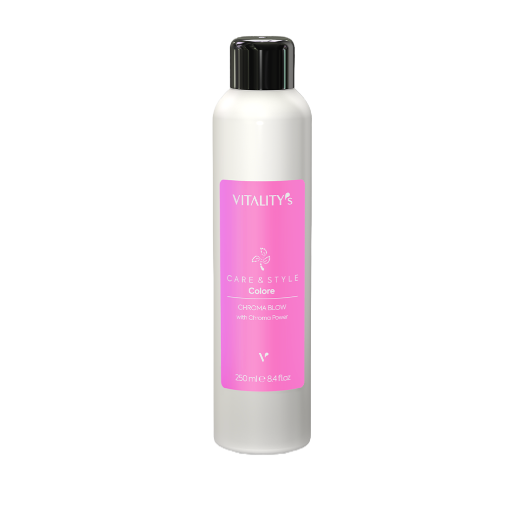 Introducing Vitality's Care & Style Chroma lightweight gloss spray for coloured hair; adds gloss to enhance colour, leaving hair shiny and bright, just like when you step out of the salon.