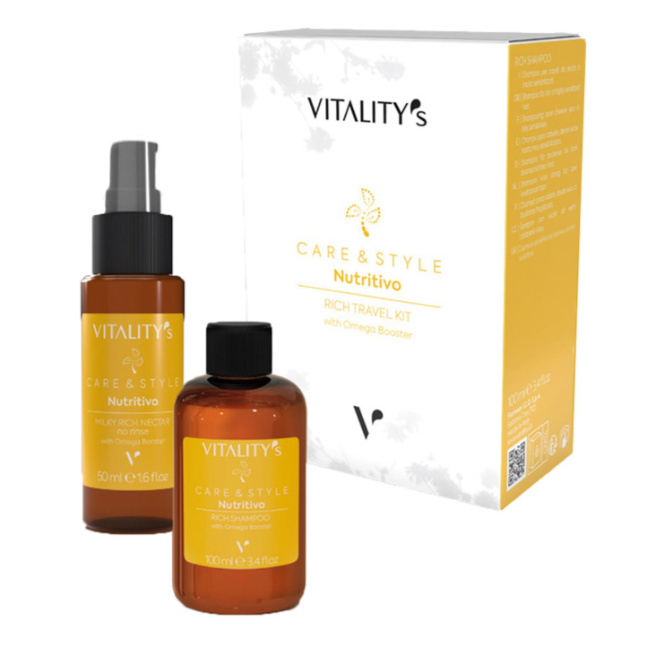 Introducing Vitality's Care & Style nutrient rich mini hair kit; bringing dry, dull hair back to life.