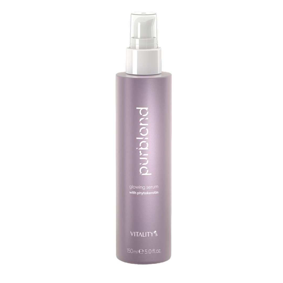 Vitality's Purblond glowing hair serum illuminates blonde, bleached, highlighted or naturally grey hair, leaving it soft and shiny.